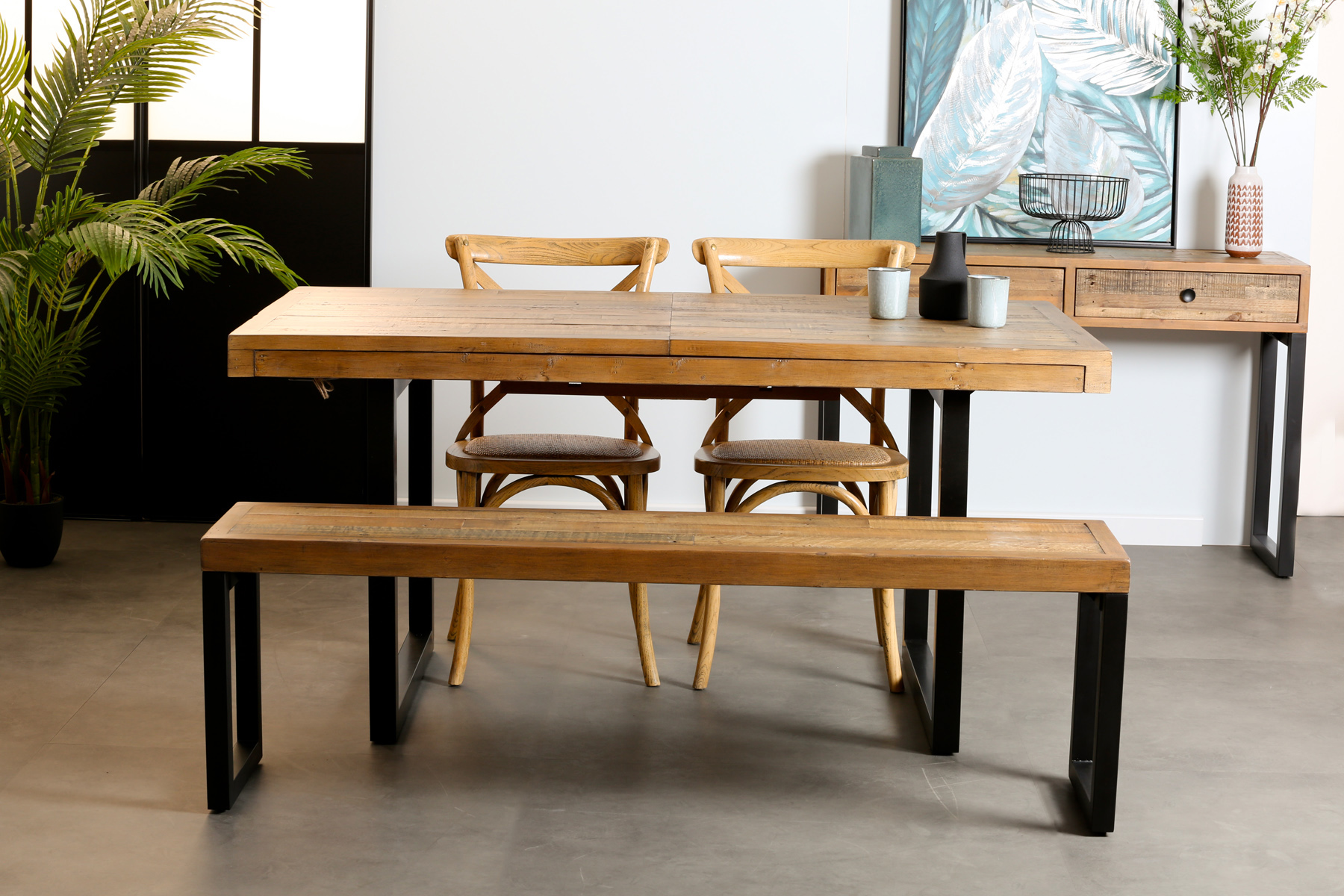 Ce banc en bois massif de teck recyclé exotique s'associera parfaitement à la table de repas ubud de la même collection.