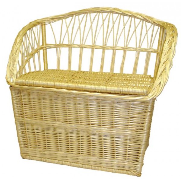 Canapé coffre, pratique pour ranger les jouets des enfants avec son petit siège tout en osier peint en blanc (quelques éclats de peinture sont partis, à rafraîchir si vous voulez) très mignon dans une chambre ou dans un jardin.