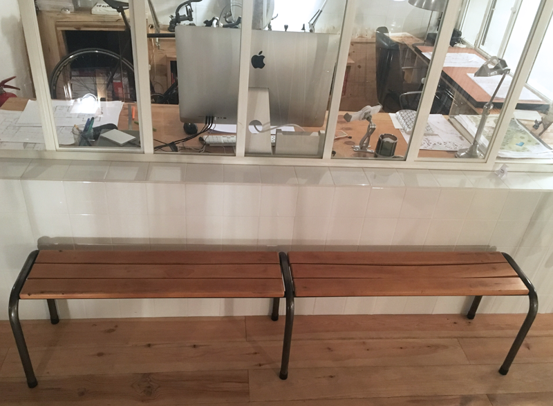 Images. Look industriel pour ce banc qui est entièrement noir. Banc d'école vintage en bois et piétement métallique noir.